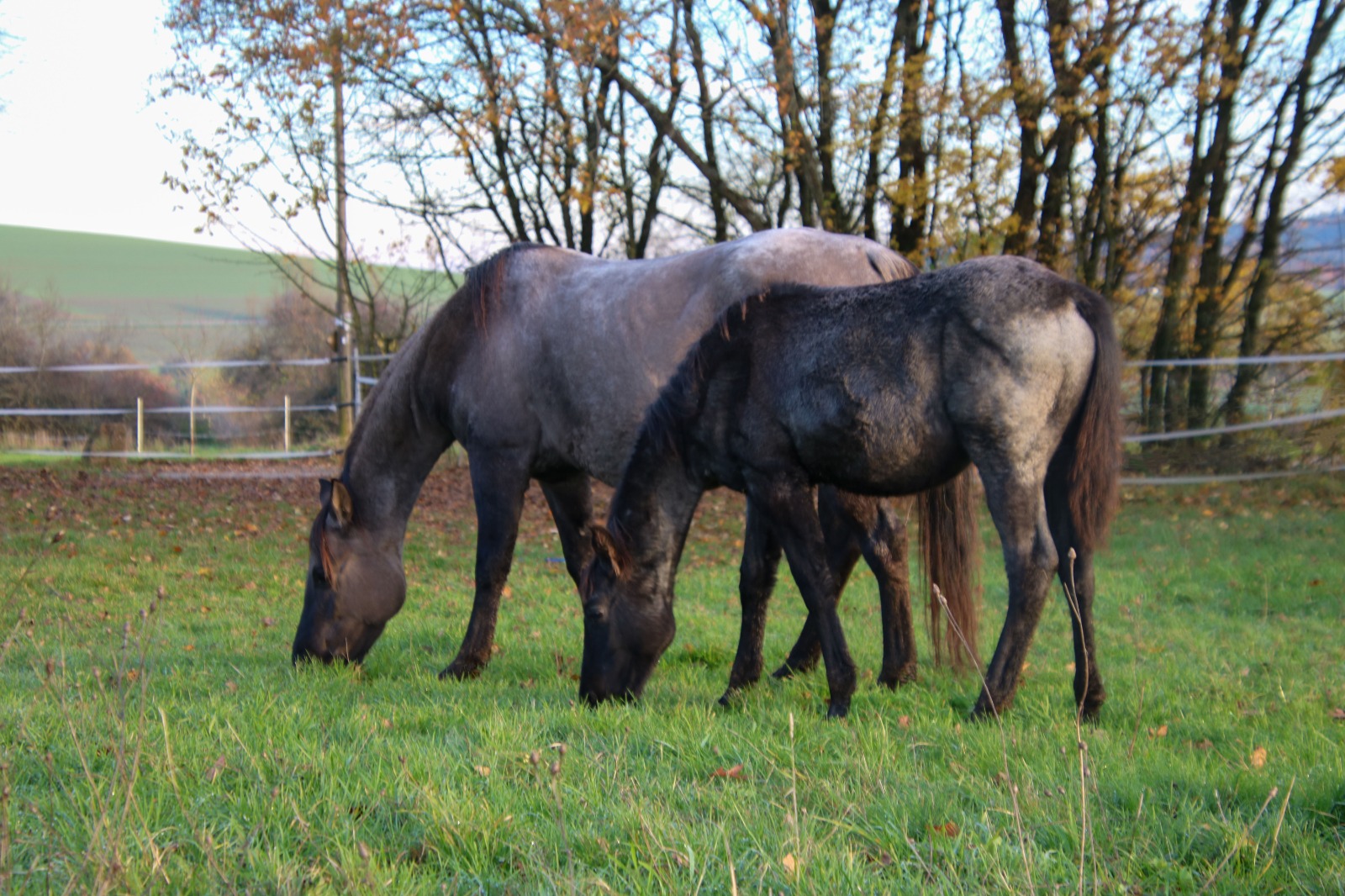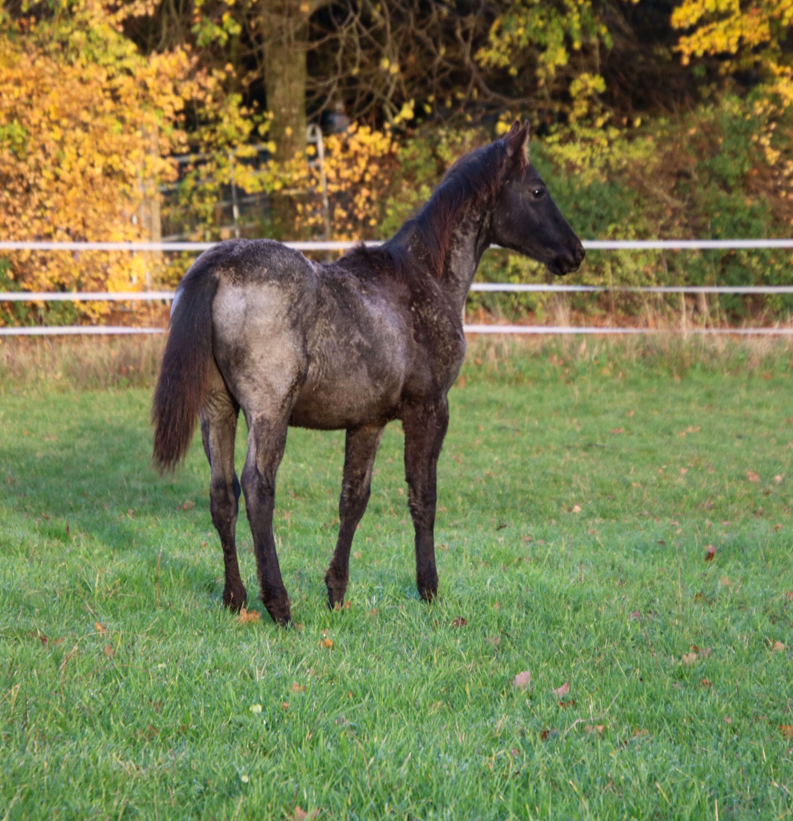 Just Be Blue Sky - dieser bildhübsche Quarter Horse Hengst, geboren am 9.4.2025, beeindruckt in der auffälligen Farbe Blue Roan und wird voraussichtlich ein Endmaß von 150 bis 154 cm bekommen. Homozygot für black. Blue ist über seine Eltern 5-Panel n/n. Er wächst gesund und artgerecht im Herdenverband mit anderen Jungpferden auf. Bei Abgabe wird er entwurmt sein. Kennt dann den Tierarzt und den Hufschmied. Mit seinem lieben Charakter verzaubert er die Umwelt. Ist verschmust sowie cool und erkundigt gerne seine Umwelt. Blue wird täglich gehändelt und benimmt sich dabei brav und unkompliziert. Beim Toben zeigt er jetzt schon seine tollen Bewegungen. Dank seiner guten Allround Abstammung wird er sich voraussichtlich sehr gut für den Sport oder/und als treuen Freizeitbegleiter eignen. Wird mit vollen AQHA Papieren und Equiden Pass abgegeben.